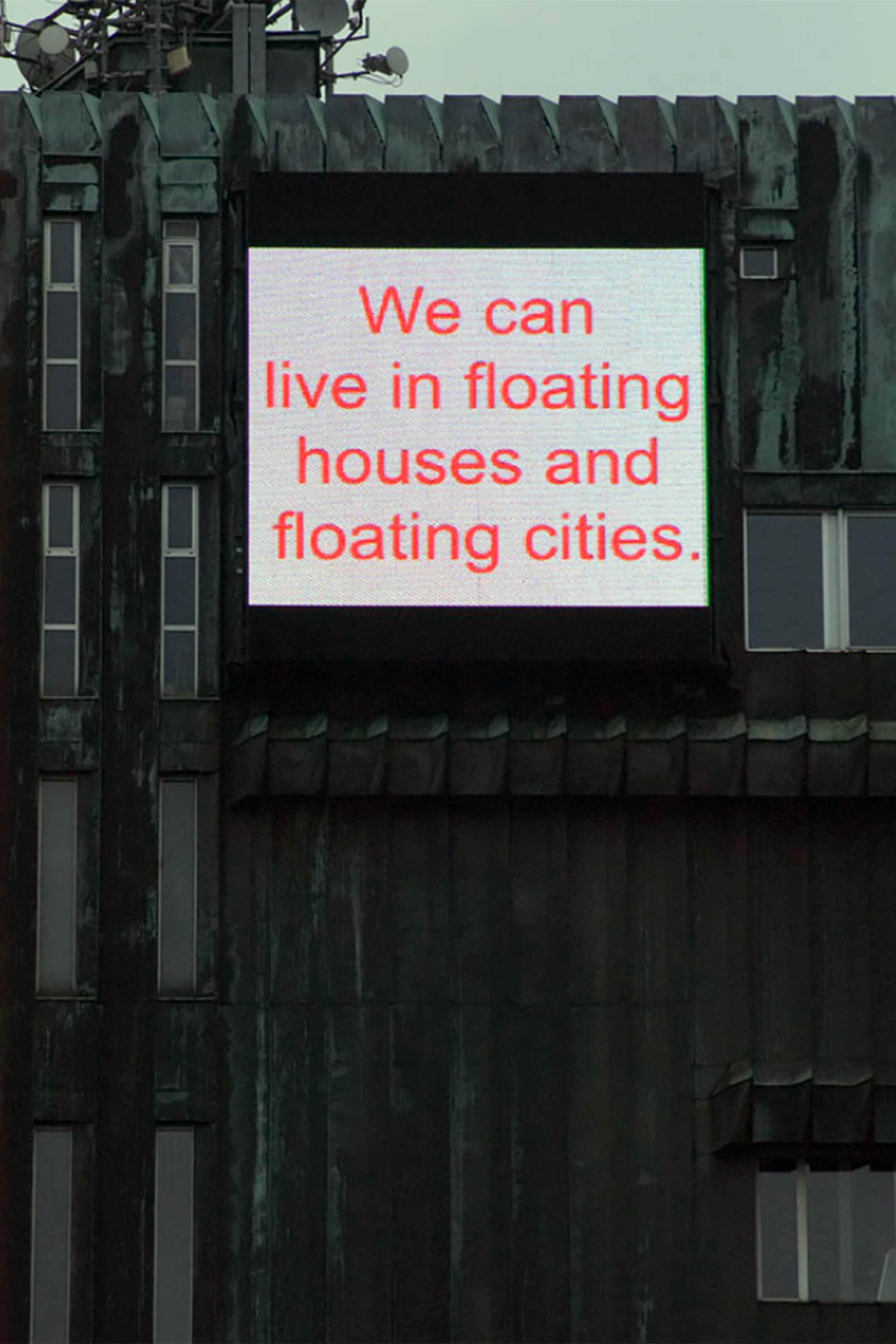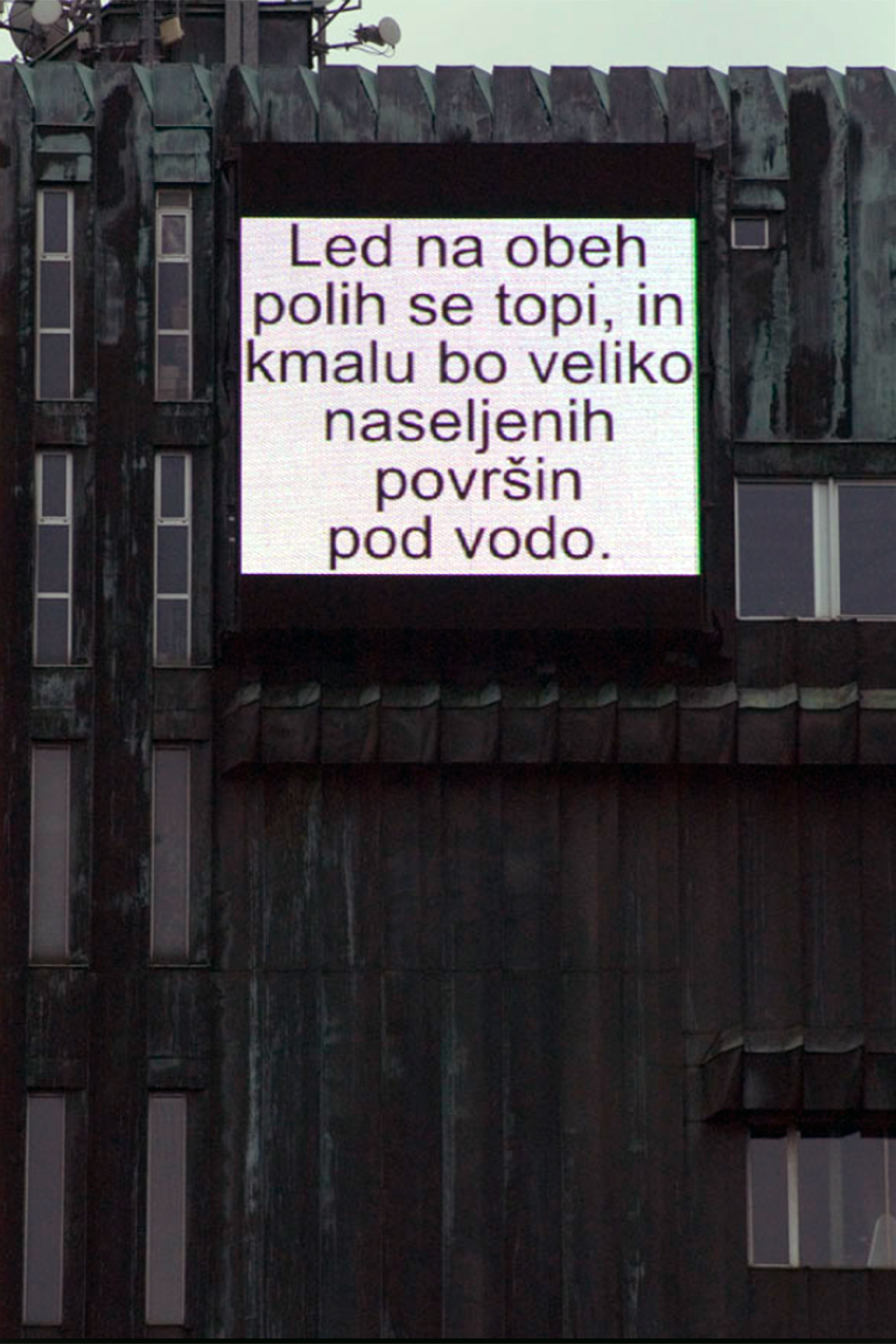 Public intervention on a large screen tower in Ljubljana, 2009.