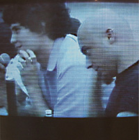 I HATE CELJE – SKUPINA ("Group") Roundtable, Celje, 2000 Skupina's first action was a roundtable discussion with various speakers who experience the town of Celje in different ways and who hold a critical view of the town and its life. The event, which took place in the courtyard of the Lower Castle, was attended by a high number of young and middle~aged local people. The speakers were mostly former citizens of Celje, but now live elsewhere. They spoke about how Celje left them indifferent and how the passivity of the local environment cancelled almost all possibilities for articulating different opinions and expressions.